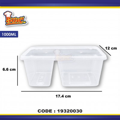 1000ml: 17.4 x 12.2 x 7.4cm